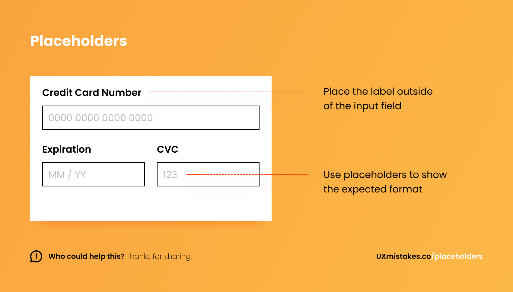 Add a label to your form fields. Use placeholder text to make the expected input easily understandable.