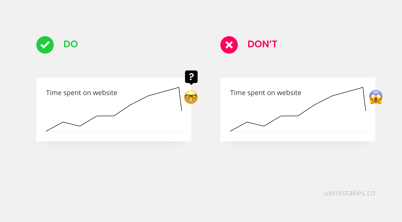 This leads to interfaces that have the only goal to keep you on the site or app. But what if we can solve a user's problem faster. Time on our site will go down, but the user experience has increased.